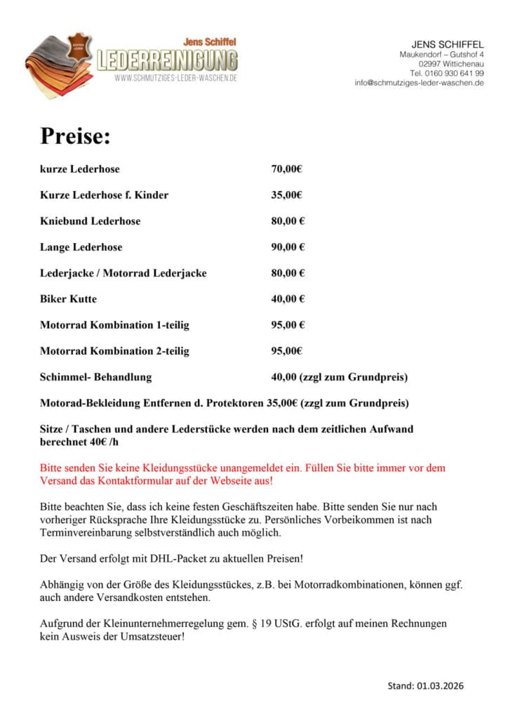 Downloads Hier könnt Ihr alle wichtigen Formulare die Ihr für die Lederreinigung bei mir benötigt herunterladen: